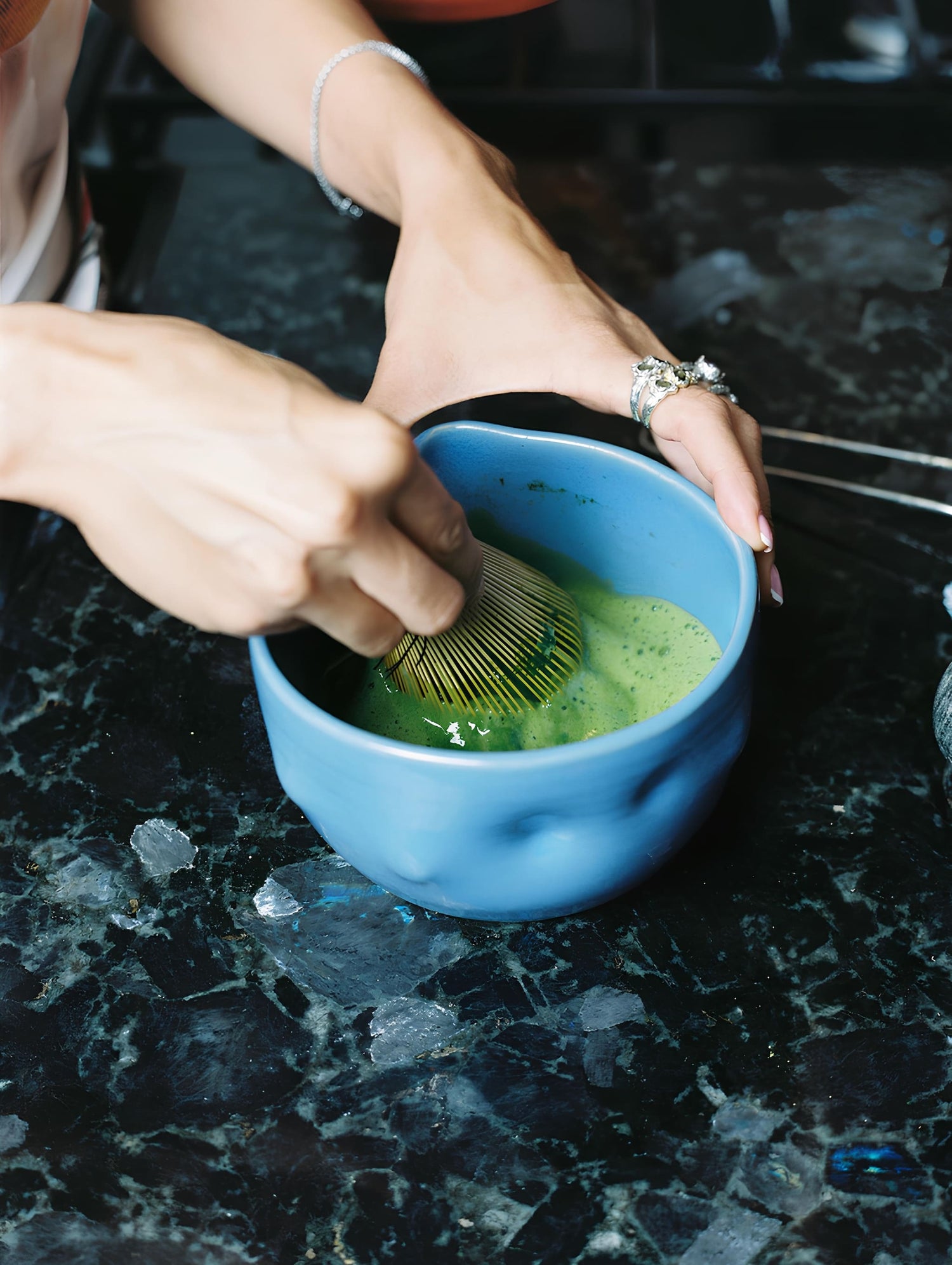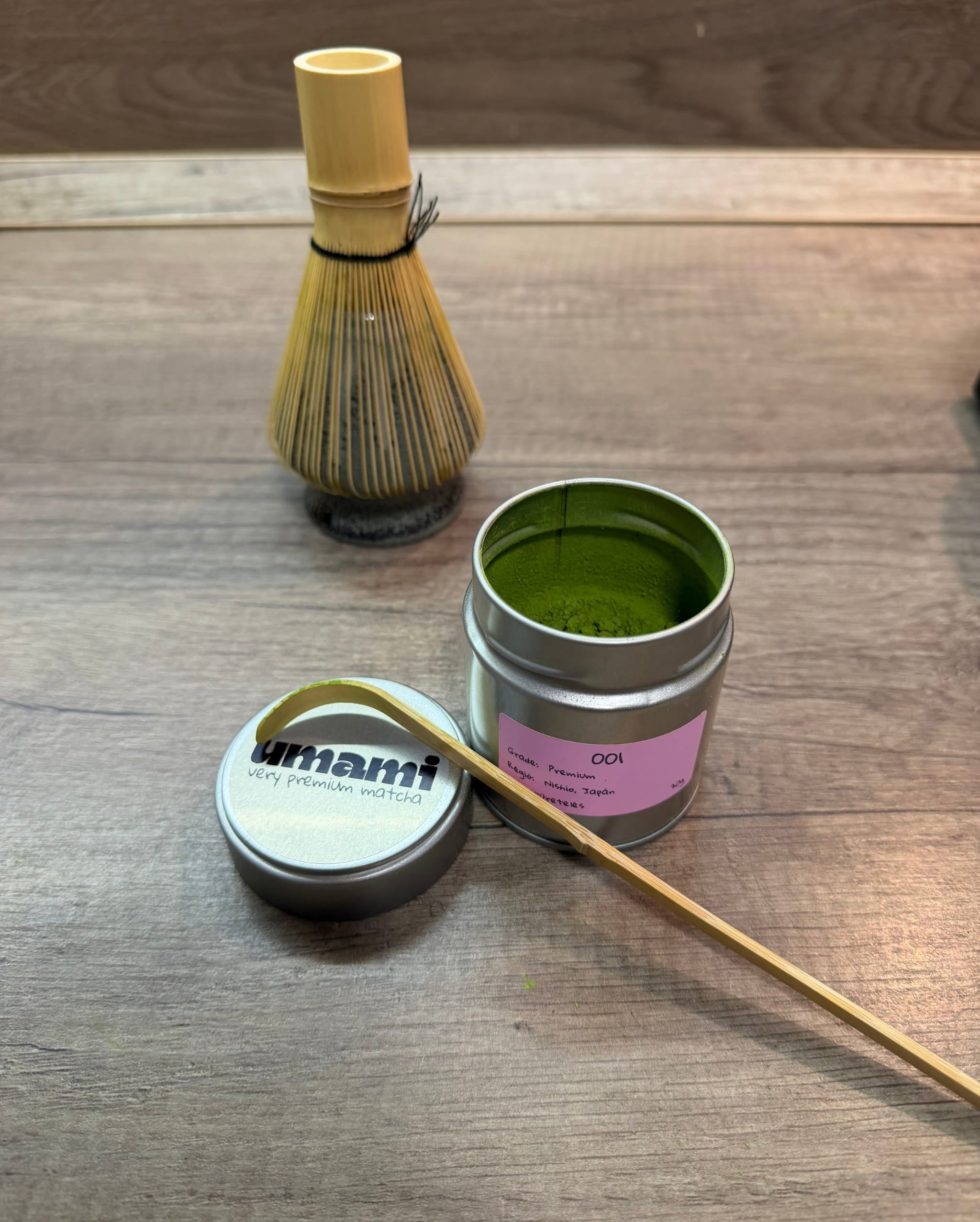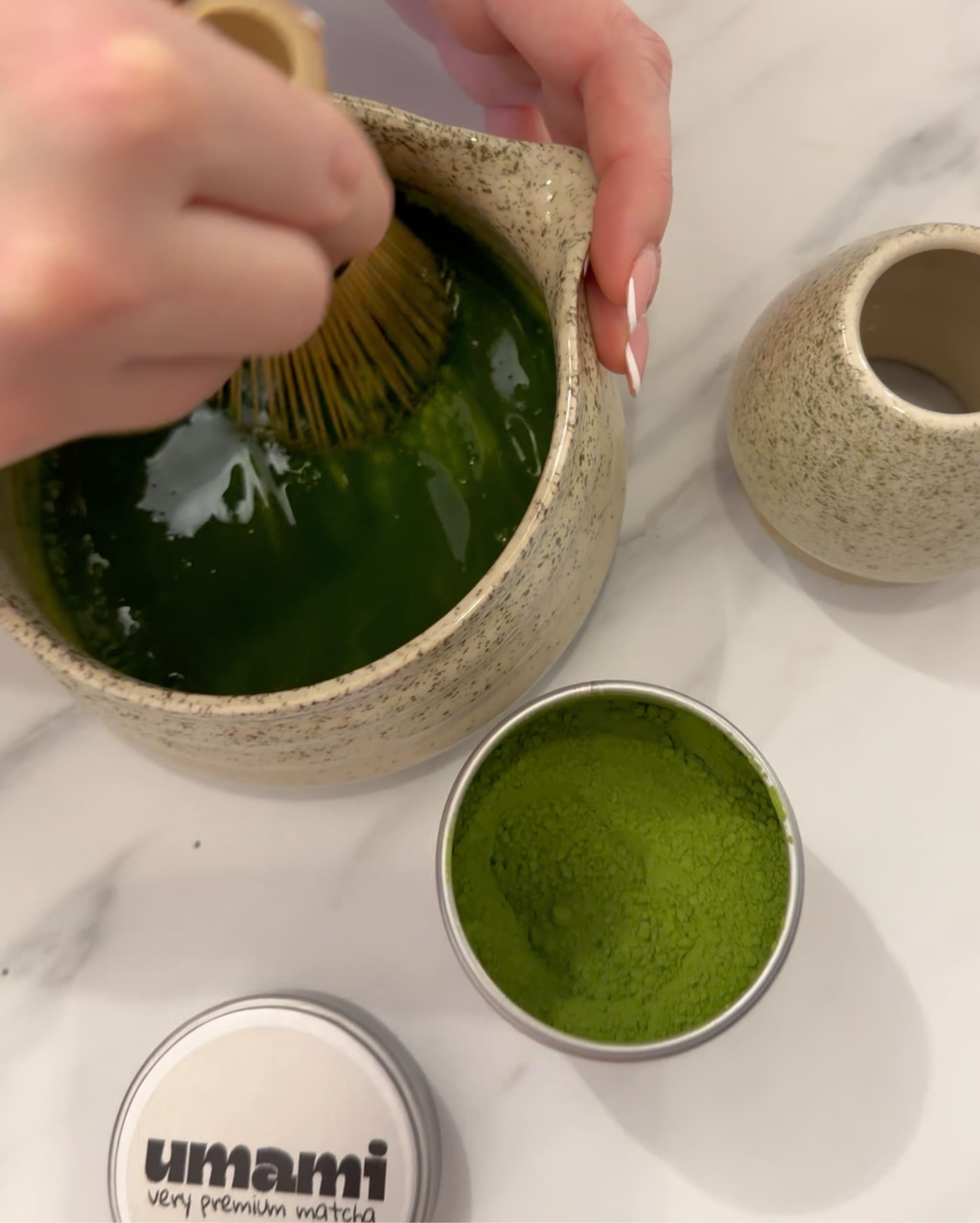 Az Umami Matcha élménye már a készítés pillanatában elkezdődik. Lassan habosítva a matcha gazdag, krémes állagot kap, miközben az aromák felélednek és a zöld szín intenzívvé válik.
