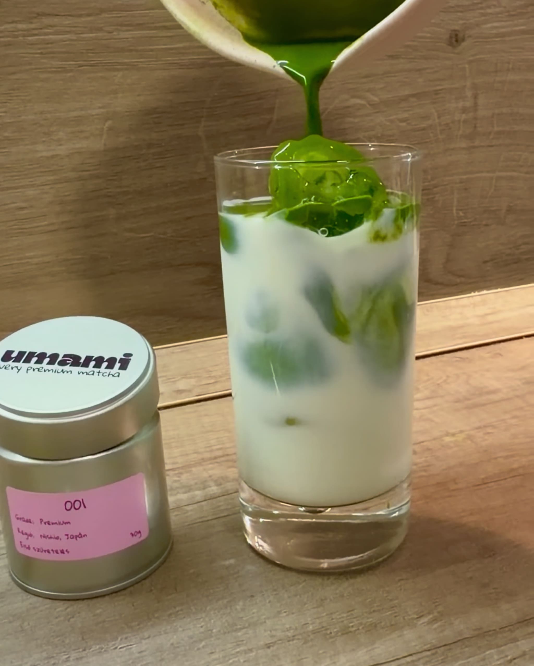 Amint elkészült, a matcha akár jéggel tálalva is megőrzi élénk színét, harmonikus ízét és krémes állagát. Az Umami Matcha minden kortyban frissességet, energiát és nyugalmat hoz a mindennapokba.